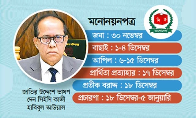 তফসিল অনুযায়ী, মনোনয়নপত্র জমা দেওয়া যাবে আগামী ৩০ নভেম্বর বৃহস্পতিবার পর্যন্ত। ১ থেকে ৪ ডিসেম্বর মনোনয়ন যাচাই-বাছাই হবে।