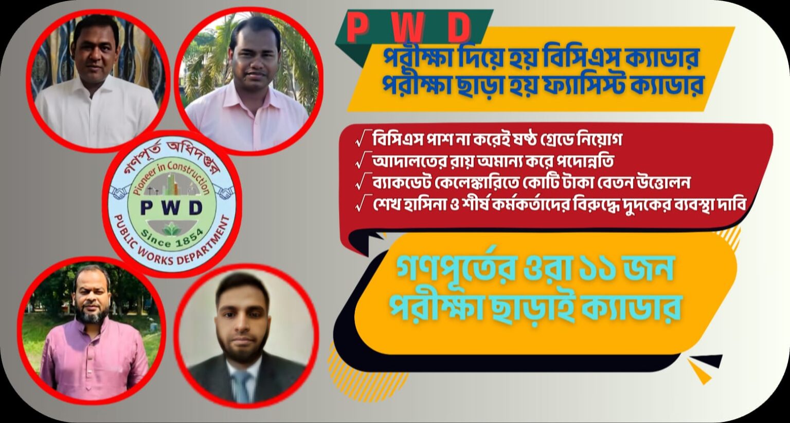 পরীক্ষা ছাড়াই হয়েছেন ক্যাডার: চাকরি না করেই তিন কোটি টাকা হাতিয়ে নিয়েছেন গণপূর্ত অধিদপ্তরের ১১ জন দুর্নীতিবাজ প্রকৌশলী!
